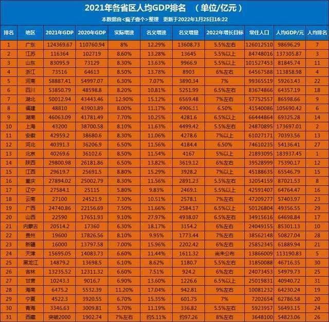 2021年陕西实现地区生产总值29800.98亿元,人均GDP为75390元,经济总量和人均GDP分别位居全国第14位、12位。